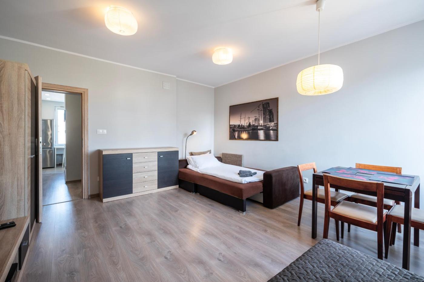 Apartament. Boasting a private entrance, this apartment features a kitchen, 1 bedroom and 1 bathroom with a walk-in shower and a hairdryer. Guests can make meals in the kitchen that has a stovetop, a refrigerator, a dishwasher and kitchenware. The apartment features a flat-screen TV with cable channels, a washing machine, a dining area, a wardrobe as well as city views. The unit has 2 beds. Apartament - 4 osobowy. Powierzchnia pokoju ok.: 35 mkw.