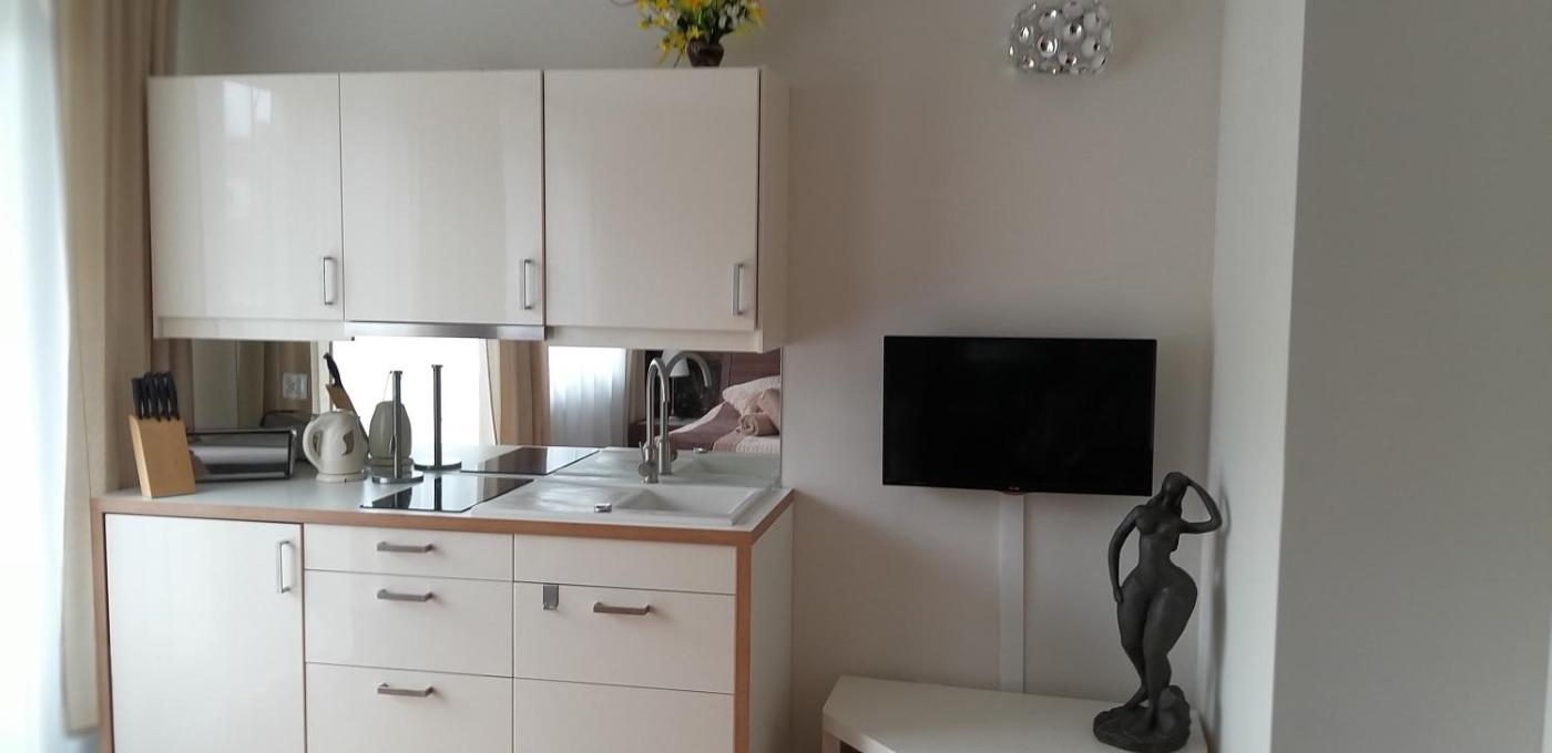 Apartament typu studio. This apartment is comprised of 1 bedroom, a kitchenette and 1 bathroom with a shower and a hairdryer. Guests can make meals in the kitchenette that is fitted with a stovetop, a refrigerator and kitchenware. Featuring a balcony with garden views, this apartment also offers a tea and coffee maker and a flat-screen TV. The unit offers 1 bed. Apartament - 2 osobowy. Powierzchnia pokoju ok.: 28 mkw.