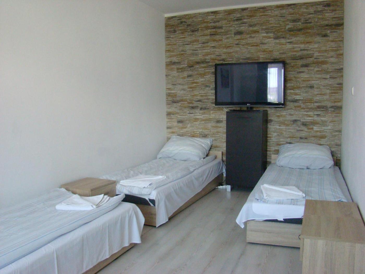Willa typu Deluxe. The villa includes a shared bathroom equipped with a shower, a bidet and a hairdryer. The fully equipped kitchenette features a stovetop, a refrigerator, kitchenware and a microwave. This villa has an electric kettle, heating, a flat-screen TV and a quiet street view. The unit offers 3 beds. Willa - 3 osobowy. Powierzchnia pokoju ok.: 14 mkw. ;