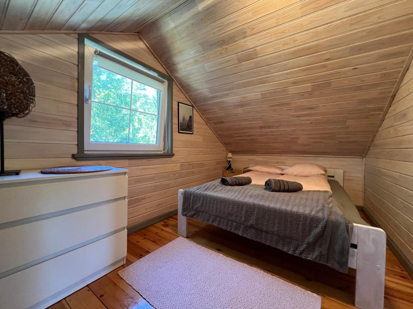 Domek z 2 sypialniami. Guests will have a special experience as the chalet features a fireplace. Featuring a private entrance, this chalet consists of 1 living room, 2 separate bedrooms and 1 bathroom with a shower and a hairdryer. Guests will find a stovetop, a refrigerator, kitchenware and a microwave in the well-equipped kitchen. The chalet also offers a barbecue. Boasting a terrace with garden views, this chalet also provides a seating area and a flat-screen TV with cable channels. The unit offers 5 beds. Domek - 5 osobowy. Powierzchnia pokoju ok.: 35 mkw. ;