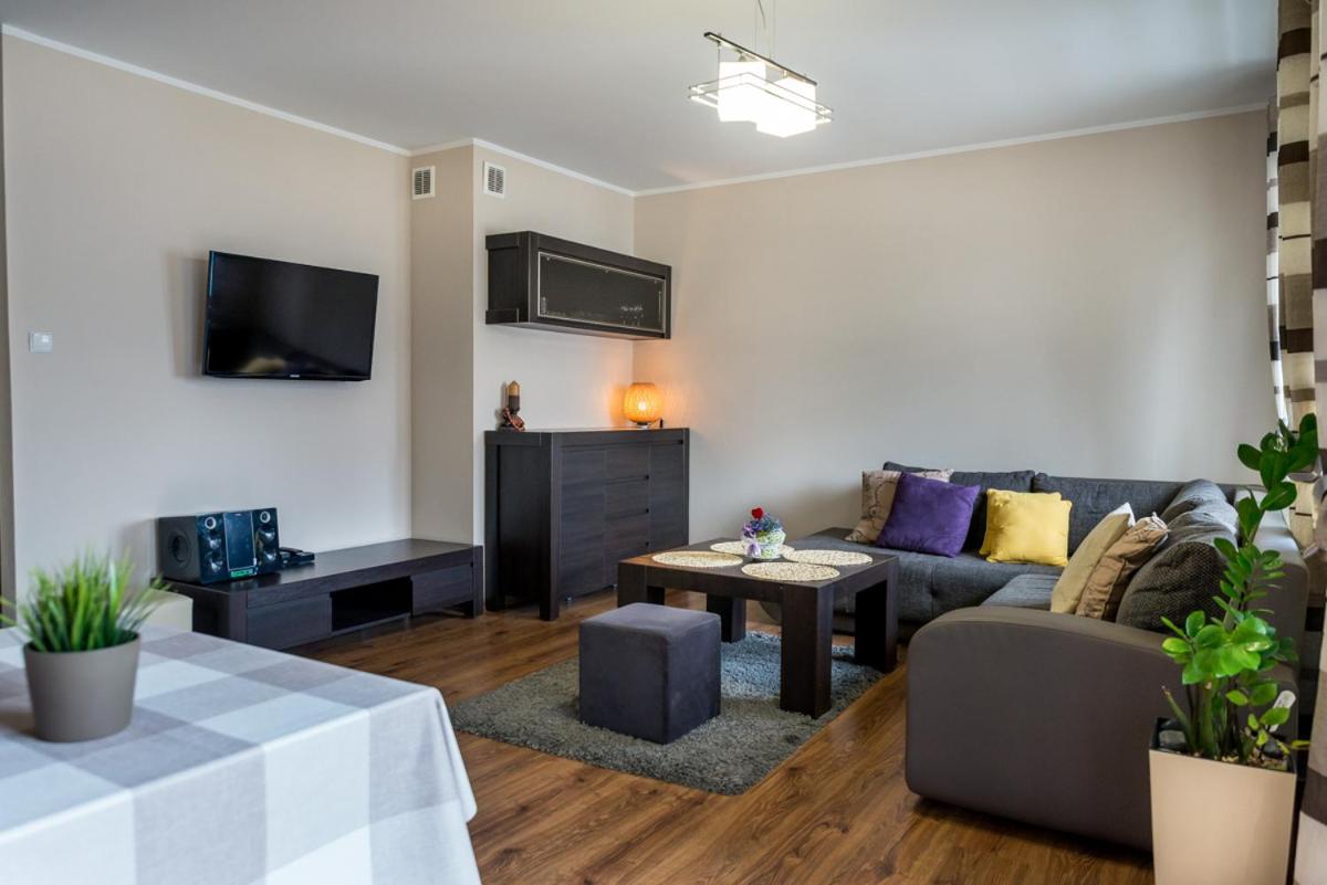 Apartament. Boasting a private entrance, this apartment features 1 living room, 1 separate bedroom and 1 bathroom with a shower and a hairdryer. Meals can be prepared in the well-fitted kitchen, which has a stovetop, a refrigerator, kitchenware and a tea and coffee maker. Featuring a terrace with garden views, this apartment also features a washing machine and a flat-screen TV with cable channels. The unit has 2 beds. Apartament - 4 osobowy. Powierzchnia pokoju ok.: 54 mkw.