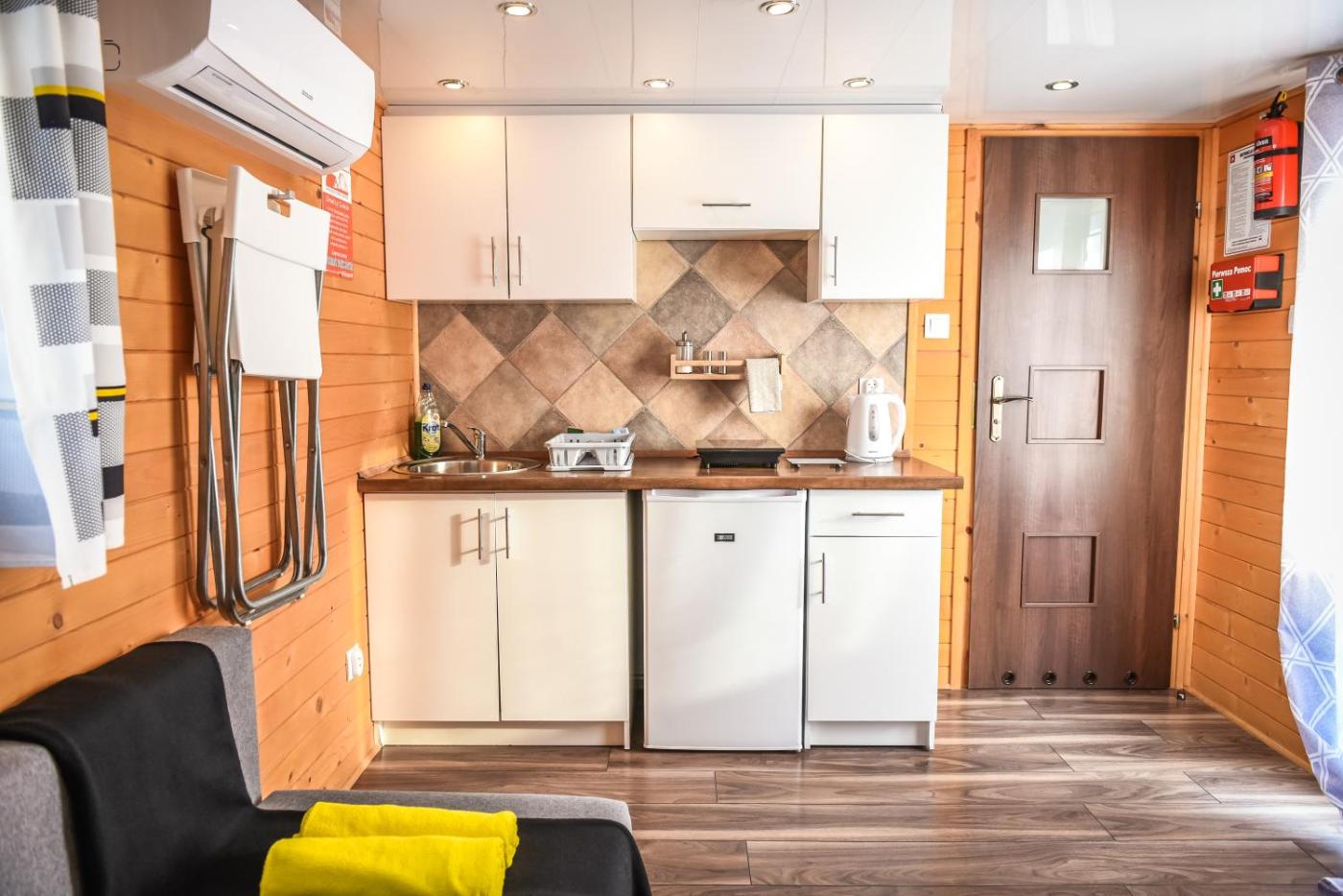 Domek typu Superior. This chalet offers a pool with a view. Boasting a private entrance, this air-conditioned chalet includes 1 living room, 1 separate bedroom and 1 bathroom with a shower and a hairdryer. Guests will find a stovetop, a refrigerator, kitchenware and a tea and coffee maker in the well-fitted kitchen. The chalet also features a barbecue. This chalet has a washing machine, soundproof walls, a flat-screen TV with streaming services and a terrace. The unit has 3 beds. Domek - 5 osobowy. Powierzchnia pokoju ok.: 35 mkw. ;